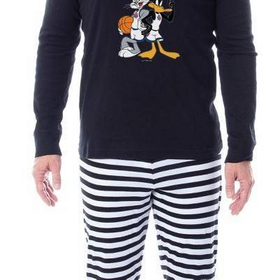 Intimo Looney Tunes Space Jam Bugs Bunny Daffy Duck Family Pajama Set Adult, X-Large Black
