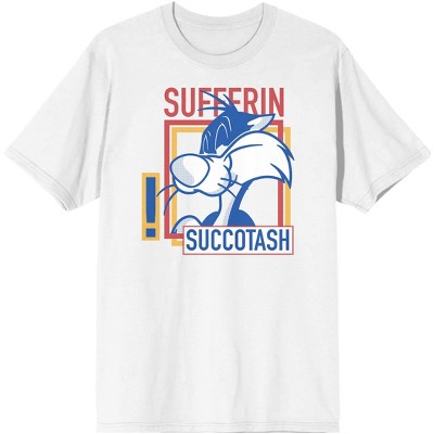 Looney Tunes Sylvester Pussycat Sufferin Sucotash Character Men's White Graphic Tee-