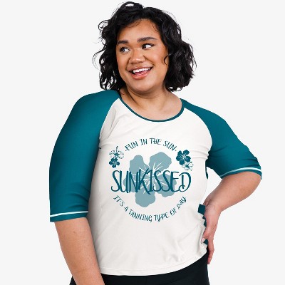 The Loose Fit Margaux Swim Top gives you extra coverage without compromising style. We love the relaxed fit, 3/4 length raglan sleeves and round neckline but one of the best features of this swim top is its slimming contrasting side panels. Sold as top only. Pair with your favorite swim bottom to complete the look.