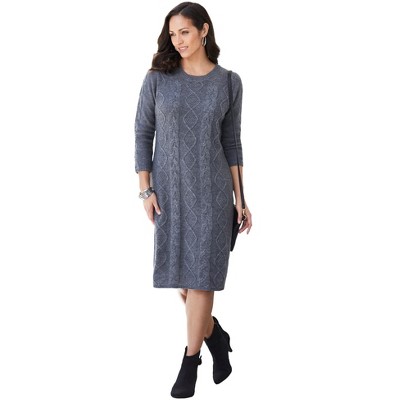 Elevate your winter wardrobe with the chic charcoal-hued Rae Sweater Dress. This dress features a flattering V-neckline and full-length sleeves to keep you warm and stylish. With its form-fitting silhouette and soft knit fabrication, it's the perfect choice for a sleek and cozy look. The midi length hemline adds an extra touch of elegance, making this dress a must-have..