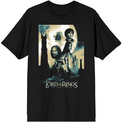 Lord Of The Rings Hobbit & Logo Adult Black Crew Neck Short Sleeve T-shirt - XL