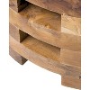 Elevate your living space with a unique blend of rustic and modern design embodied in this exceptional coffee table! Crafted from plantation teak, its solid top is supported by staggered blocks, all handcrafted to perfection. This whimsical design adds an enchanting charm to your home decor, seamlessly merging natural beauty with modern aesthetics. The distinctive drum shape of this table effortlessly breaks up linear spaces, providing the perfect platform for showcasing your favorite books, art pieces, or vases filled with vibrant blooms. As a result of the natural materials and processes used, each piece boasts its own unique character, ensuring that your style remains original and exceptional. Versatile in its functionality, this coffee table can also be used as an accent table or nightstand, making it a versatile addition to your home. For a complete look, pair this coffee table with its matching end table and a comfy couch, creating a welcoming living room that's ready to host and entertain your friends and family. Embrace the beauty of nature with a touch of modern elegance in your home today!