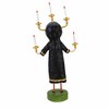 Light up your Halloween decor with Candle Maker, a delightfully spooky figurine from the whimsical world of Lori Mitchell. Standing 8 inches tall, she wears a striking black dress with gold stripes, orange leggings, and holds candles in both hands while balancing a glowing trio on her head. Her long gray hair and thoughtful details bring character and charm to this enchanting piece. Perfect for collectors and Halloween enthusiasts, she’s a glowing reminder that magic is in the little things. Measures Approximately 8 In H X 3.75 In W X 2 In D (HxWxD). Includes 1 Halloween Figurine.