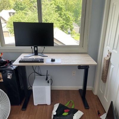 Loring Manual Height Adjustable Standing Desk White - Threshold™: Modern Metal Frame, 10+ Years, No Storage