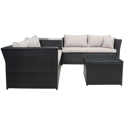 Transform your outdoor space into a stylish retreat with the LORMA 4PC Living Set in Black with Light Grey Cushions. This stunning ensemble combines sleek design with functional comfort, crafting an inviting atmosphere in any backyard, patio, or balcony. The rich black PE Wicker frame offers a modern touch, while the light grey cushions provide a soft contrast, enhancing the contemporary aesthetic.