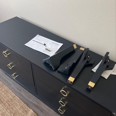 This product arrives on time but after inspecting it, the back piece has a deep long gouge, there are prices of trim missing or damaged and one drawer was completely separated from the drawer slider. What an epic disappointment. For a dresser of this price I would expect better quality.