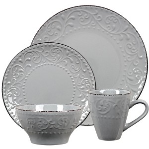 Lorren Home Trends 16 Piece Stoneware Scroll Dinnerware Set-Gray