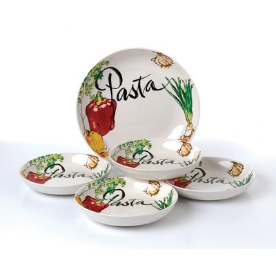 Porcelain Pasta set includes 1 large serving bowl and 4 small individual bowls. Serve pasta or any family favorite in this colorful floral design pattern. Simple and elegant design featuring a classy floral bouquet motif. Bowls are dishwasher and microwave safe for easy use and easy clean up! Serving measures 11" x 2", individual bowl measure 8"x 1.5".