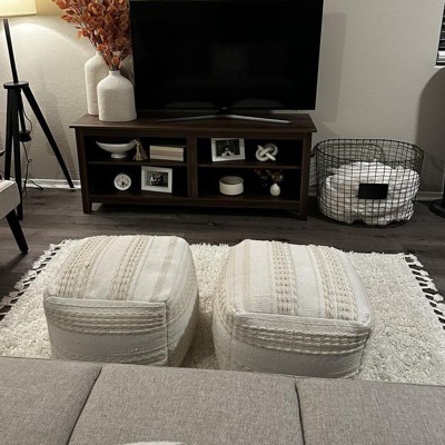 Create comfortable and inspired spaces in your home by using this Lory Pouf from Threshold™ to make your own eclectic style. This square ottoman pouf combines a unique variety of textures - from tufts to tassels to beads - to create a lively look. Made with a cotton and wool blend for softness and durability, this textured pouf ottoman is perfect for placing in front of a couch or armchair.