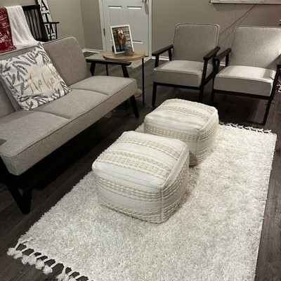 Lory Pouf Textured Neutral - Threshold™: Bohemian Square Ottoman, Tufted Handmade, Light Beige, Cotton Wool Blend