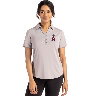 Los Angeles Angels Cutter & Buck Forge Eco Heather Stripe Stretch Recycled Mens Polo - Elemental Grey Heather - Large - 1 of 1