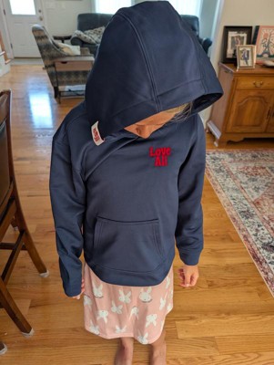 My daughter loves how silky soft this hoodie is. The fit is great and as easy for her to get in and off over her head. The “love all” logo on the chest stands out and is easy to read. I also like the logo tag on the hood, which adds to the design.