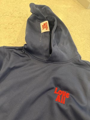 The Love All Tennis Kids Fleece Hoodie and navy blue by sport - Tek In a youth size small, this hoodie is true to size very comfortable to wear, roomy enough to move around in. Could definitely wear a tee under. It is also soft and comfortable