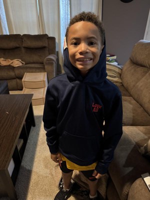 The Love All Tennis Kids Fleece Hoodie and navy blue by sport - Tek In a youth size small, this hoodie is true to size very comfortable to wear, roomy enough to move around in. Could definitely wear a tee under. It is also soft and comfortable