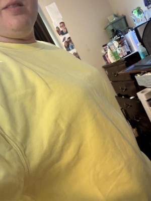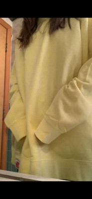 So happy with this sweatshirt. It's true to size and comfortable. Loving the yellow, its not overly bright. The sleeves are long but it makes for a good lounge sweater. The length is good as well. Can be worn for long fit or pulled up to your waist.