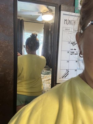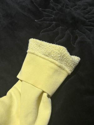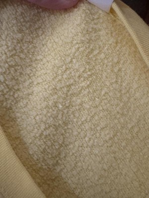So comfortable to wear around the house! I love the yellow color, as well as the attention to detail with the embroidery and little emblem on the bottom. The inside of the sweatshirt is very cozy and the typical old school material of a sweatshirt. It is not scratchy at all which is impressive. I will say I think it runs big. The sleeves are a bit long so if you’re unsure of the size, I would go down a size.