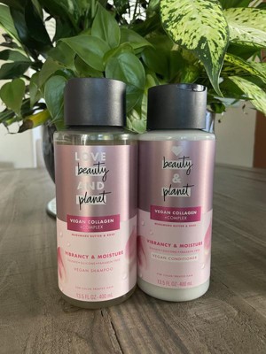 Get 3X softer, healthier-looking color-treated hair* with Love Beauty and Planet's Murumuru Butter & Rose Vibrancy & Moisture shampoo and conditioner! This moisturizing blend with Amazonian Murumuru Butter and our Vegan Collagen +Complex with natural bond-strengthening actives and coconut oil, adds weightless hydration to dry, color-treated hair, while giving a boost of healthy-looking vibrancy, softness and shine!* Like all Love Beauty and Planet hair products made with clean ingredients, it's PETA-certified cruelty-free and vegan, sulfate-free, silicone-free, paraben-free, dye-free and formulated without phthalates and microplastics. Plus, this conditioner formula is 97% naturally derived, 100% biodegradable** and packaged in a 100% recycled bottle. How to Use: You know it - after using Love Beauty and Planet's Murumuru Butter & Rose Vibrancy & Moisture shampoo, massage this nourishing conditioner from mid-lengths to ends, rinse and go easy on the tap. On a mission to clean up beauty for all - enjoy more good hair days with Love Beauty and Planet's clean formulas, indulgent fragrances & a little love for the planet! *shampoo & conditioner system vs. non-conditioning shampoo. **Ingredient biodegradation based on OECD test methods (301, 302 and/or 310) and Principles.