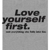 • CUSTOM DESIGNED: Send the right message with this apparel featuring a big, bold graphic of the phrase, "Love Yourself First" - an eye-catching and inspiring image that has been professionally printed for long-lasting print quality.