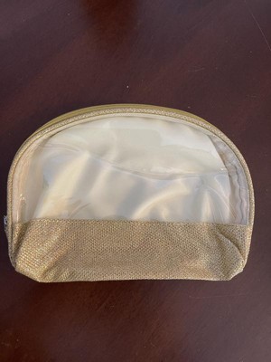 - Includes a gold shimmery cosmetic bag with zipper