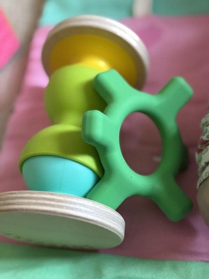 - Grasp & Turn Silicone Teether- Encourage two-handed play with this easy-to-grasp, satisfying teether that’s fun to hold.