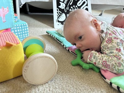 Very thought through kit, my baby is 5 months, and she can play independently for 20+ mins with these toys!! Also I can tell my baby is developing great, but it’s also important to play with babies- because they learn through play. Green teether is our favorite- we take it everywhere we go:)