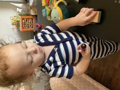 We love this toy. Perfect size for the diaper bag, we love to pull this out to entertain our toddler at restaurants! Great for countless moments of open-ended play!