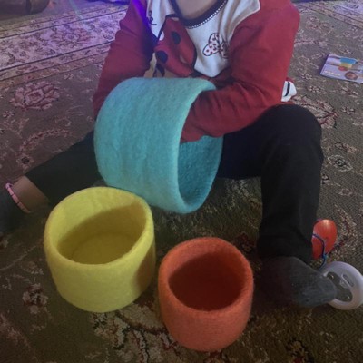 I love that these are a softer alternative to other Montessori-style nesting toys. I got them for my baby nephew so he can start working on his stacking and "inside/outside" skills, but my preschool-aged daughter wants to use them too to play house and store small treasures.