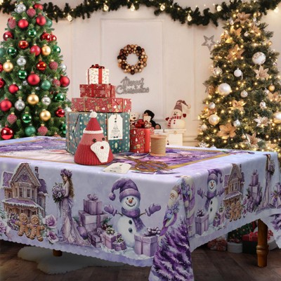LOVEVOOK Merry Christmas Tablecloth, Snowman Tablecloth, Snowflake Table Cloths Stain Resistant Dining Table Cover for Holiday Decor