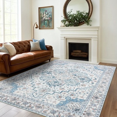 LOVEVOOK 6x9 Feet Large Blue Area Rugs for Living Room, Non-Slip Bedroom Rug, Modern Oushak Carpet Machine Washable Rugs for Office Dining Room