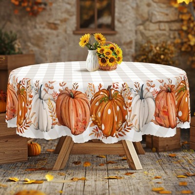 LOVEVOOK Round 60 Inch Christmas Tablecloth, Winter Snowman Trees White Washable Table Cover for Party Picnic Dinner Holiday Decor