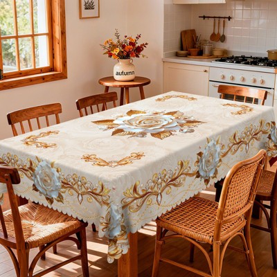 LOVEVOOK Washable Green Floral Tablecloth Rectangle 60x86 Inch, Seasonal Flower Table Cover for Party Picnic Dinner Christmas Decor