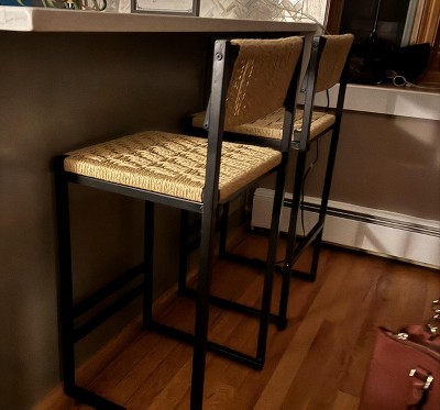 Durable & Reliable: Our kitchen stool features a sturdy black metal frame and a woven natural paper rope seat, ensuring long-lasting use. Anti-slip screws provide stability and lasting support for everyday use.