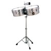 This percussion set includes the LPA256 Aspire Timbale Set and the blue, high-pitch LP1205 Jam Block. The timbale set is an affordable, quality set that is well suited to traditional Latin styles or as an adjunct to regular kit. Timbales feature 13" and 14" diameters with 6" shells and have drum kit-style tuning. They offer characteristic timbale sound that projects well to cut through even the loudest bands. Includes heavy-duty adjustable stand, Aspire cowbell, cowbell holder, and key. LP Jam Blocks are the modern versions of the age-old wood blocks that were fragile and could not stand up to the rigors of aggressive touring. Crafted from LP's exclusive plastic formulation, Jam Blocks have the rich tone of wood blocks and the strength and durability to withstand even the hardest-hitting players. Comes with a heavy-duty mounting bracket and LP's famous eye-bolt assembly for easy mounting to any 3/8" diameter rod.