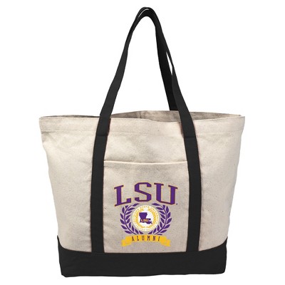LSU Tigers Distressed School Name Canvas Tote Bag With External Pocket, Reusable Shoulder Bag for Shopping, School, Beach