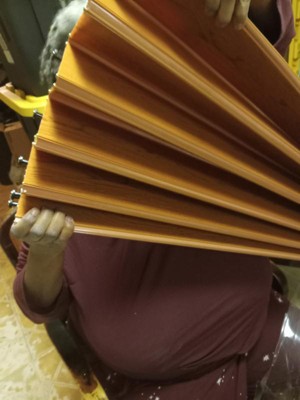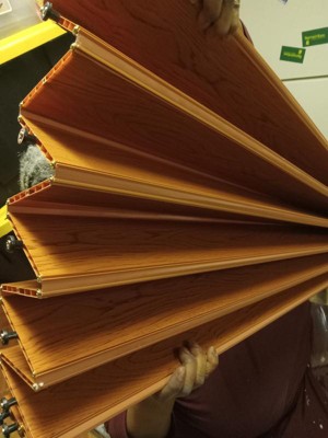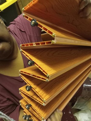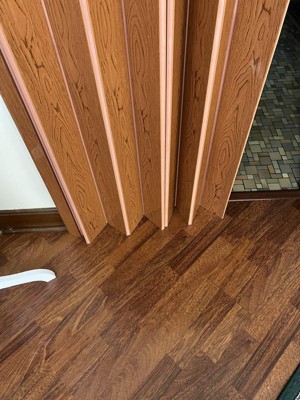 [This review was collected as part of a promotion.] Received this free for an honest review. Nice pecan colored accordian door. Used in our finished basement to sepate one o the rooms. Very well constructed and sturdy. Easy to open and close. Nice look to it,