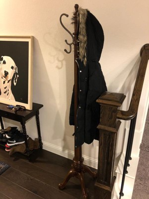 This is a must have for anyone looking for a traditional/sturdy/attractive/vintage-looking coat rack. I wanted something to keep our coats from being all over the place, that looked traditional/vintage. It is really hard to find unique attractive pieces like this, and I was surprised to find it at Target for such a great price! I had seen it on other sites for a much higher price, and I am so glad that I made this purchase, aside from being functional it is a classy visual piece. Fitting the legs in the slots was a little tricky, I think some pieces were cut a little differently than others, but I was still able to put it together and it is working great in the foyer of our home. Curved Queen Anne style legs are also a feature on this beautiful coat rack, which are soooo hard to find these days with everything tending to be squared off and modern looking nowadays, so I definitely recommend this piece if your love affordable unique vintage looking pieces!