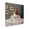 This ready to hang, gallery-wrapped Wall Décor Living Room Canvas by Trademark Fine Art features a painting of a chicken sitting at a table with a plate of food. that'll look great in any bedroom, kitchen, bathroom, or apartment. Whether it's contemporary, rustic, modern, or traditional style wall décor, Trademark Fine Art offers a variety of high-quality, carefully built wall art that will surely complement any style with art themes that range from fascinating abstracts to breathtaking landscapes. Each bathroom wall art canvas is printed on durable cotton poly blended canvas using Giclee, a process for creating high-quality fine art reproductions that are nearly indistinguishable from the original piece. From the bedroom to the living room, or even the office, Trademark Fine Art makes professionally handcrafted, ready to hang wall décor that will be admired for years to come.