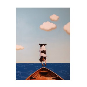 - ART WALL CANVAS - This Lucia Heffernan 'Overboard' canvas art by Image Conscious is sure to complement any room décor with its Animals style featuring a depiction of a dog jumping off a boat..