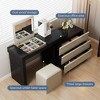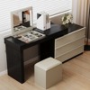 Elevate your daily beauty routine with this modern black expandable vanity table, which is designed to meet your space and storage needs. Featuring a telescopic design, this vanity table can be easily adjusted in length to fit both small and spacious areas, making it an ideal choice for apartments, bedrooms, or studies. With multiple smoothly gliding drawers, it provides ample storage space for cosmetics, skincare products, jewelry, and more, keeping your essentials organized and within easy reach. The sleek black finish and clean lines add a touch of elegance to any room, and the space-saving structure perfectly combines practicality with a modern style.