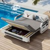 Luck Live Modern Patio Sofas 50.3in extendable pull Outdoor Sofa bed,Solid wood & White metal frame/Gray cushion with storage function