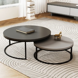 Product Name: Luck Live Coffee table, round side table, a set of 2, metal frame wooden stacking tea table.