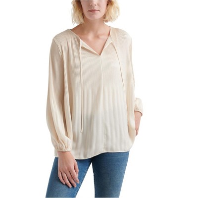 Lucky Brand Womens Lace-Up Neck Pullover Blouse