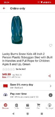 This item was not at all what was pictured or described online. It was a completely different color, there were no handles, and it had a cheap rope attached to the cheap plastic sled. This was worth nowhere near what I paid for, even on sale. Very disappointed. Included is a screenshot of what I thought I was ordering.