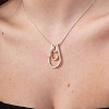 The Horse Shoe Tri Pendant is a unique and stylish piece of jewellery crafted from 925 Sterling Silver and gold vermeil. It's design showcases a trio of horseshoe shapes elegantly intertwined. The addition of gold vermeil enhances its beauty with a warm, golden glow.