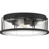 Add a touch of understated elegance to a primary or guest bathroom with Ludlow. Clear glass shades are paired with clean industrial-inspired lines for a look that is both rustic and polished at the same time. Ludlow is available in a two, three, or four-light bath light - plus a matching three-light flush mount light for added versatility. Choose from either earth black or brushed nickel to further customize Ludlow to your desired setting.