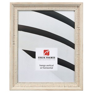 Antique and elegant, the Luella picture frame is constructed with a solid wood core and composite finish. This beautiful frame features a scalloped profile with vertical striped detailing alongside a darkened beaded inlay. Dark and neutral tones throughout create a unique, distressed appearance. At 1" wide and over 1" tall, the Luella off-white picture frame makes an eye-catching centerpiece