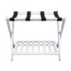 Welcome your guests with a convenient spot to pack and unpack with this Hotel-Style Folding Luggage Rack. Wide 27" top accommodates most luggage. Sturdy construction supports up to 50 pounds on the top shelf and 50 pounds on the lower for worry-free use. And the convenient lower shelf doubles as a makeshift shoe rack or simply an extra space to store items off the floor. Folds easily and compactly for storage, ideal for busy homes that house frequent visitors