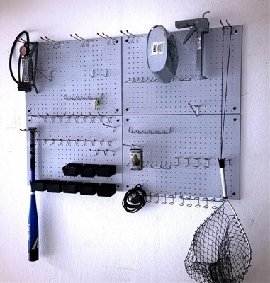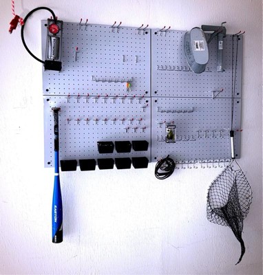 [This review was collected as part of a promotion.] This set is perfect for getting your shed or garage organized. Comes with four 24x16 panels, so you can arrange in the way that works best for you, as well as multiple different accessory hooks. These panels are so much more durable than the old wood pegboards where the holes quickly wear out and the hooks no longer fit. You won't have that problem with these stainless steel panels! I love the sleek look of these black panels. My only concern is how long the plastic bin accessories will last. The plastic hooks don't feel like they will hold up for very long, but aside from that, I am very happy with everything overall. Definitely recommend!