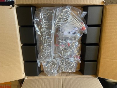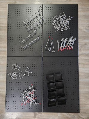 [This review was collected as part of a promotion.] This set is perfect for getting your shed or garage organized. Comes with four 24x16 panels, so you can arrange in the way that works best for you, as well as multiple different accessory hooks. These panels are so much more durable than the old wood pegboards where the holes quickly wear out and the hooks no longer fit. You won't have that problem with these stainless steel panels! I love the sleek look of these black panels. My only concern is how long the plastic bin accessories will last. The plastic hooks don't feel like they will hold up for very long, but aside from that, I am very happy with everything overall. Definitely recommend!