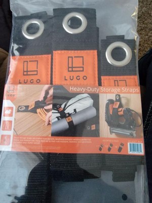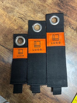 Declutter like a pro with the LUGO®® Heavy Duty Storage Straps— the secret weapon for taming chaos in the garage, shed, and beyond! With its endless uses from hanging items on the wall and wrangling extension cords, hoses, and rogue ropes, tidy organization is just a strap away. Crafted from weatherproof nylon webbing, these straps can handle up to 50 lbs. Hang them up using the rust-resistant stainless steel grommet, and watch your clutter vanish. Includes (2) 16.75 x 2", (2) 13.75 x 2", (2) 11 x 1.5" Straps